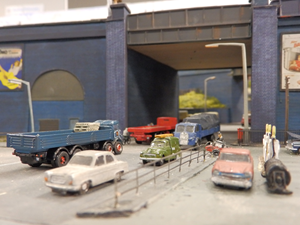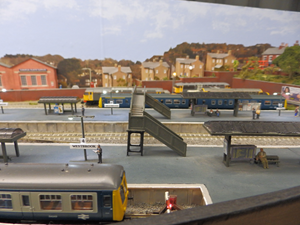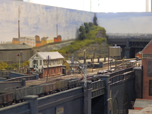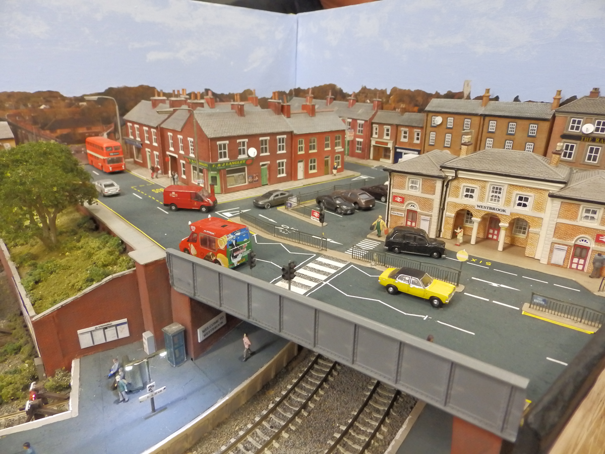 North Road, no relation to Darlington. A twin track DCC layout incorporating a repair & fuel depot, carriage and wagon repair facilities. Totally fictitious, can be located anywhere you choose. All tracks are code 55 finescale Peco nickel silver streamline with unifrog points. Set in a busy market town in a low-level position providing all manner of running and shunting possibilities. 55+ Metcalfe kits, some detailed with guttering and down pipes, low relief and full size to create the town effect on the upper level where Faller 'N' gauge vehicles can be seen running. Railway buildings are a mixture of Peco Manyways kits, Graham Farish and Hornby Lyddle End. The bridge is scratch built using various Peco girder bridge sides and trestle kits. Modern street and yard lighting, including strip led's, the pedestrian crossings and operating traffic lights and colour light signals / modules are all supplied by Layouts4U, CR Signals and ModelEx.