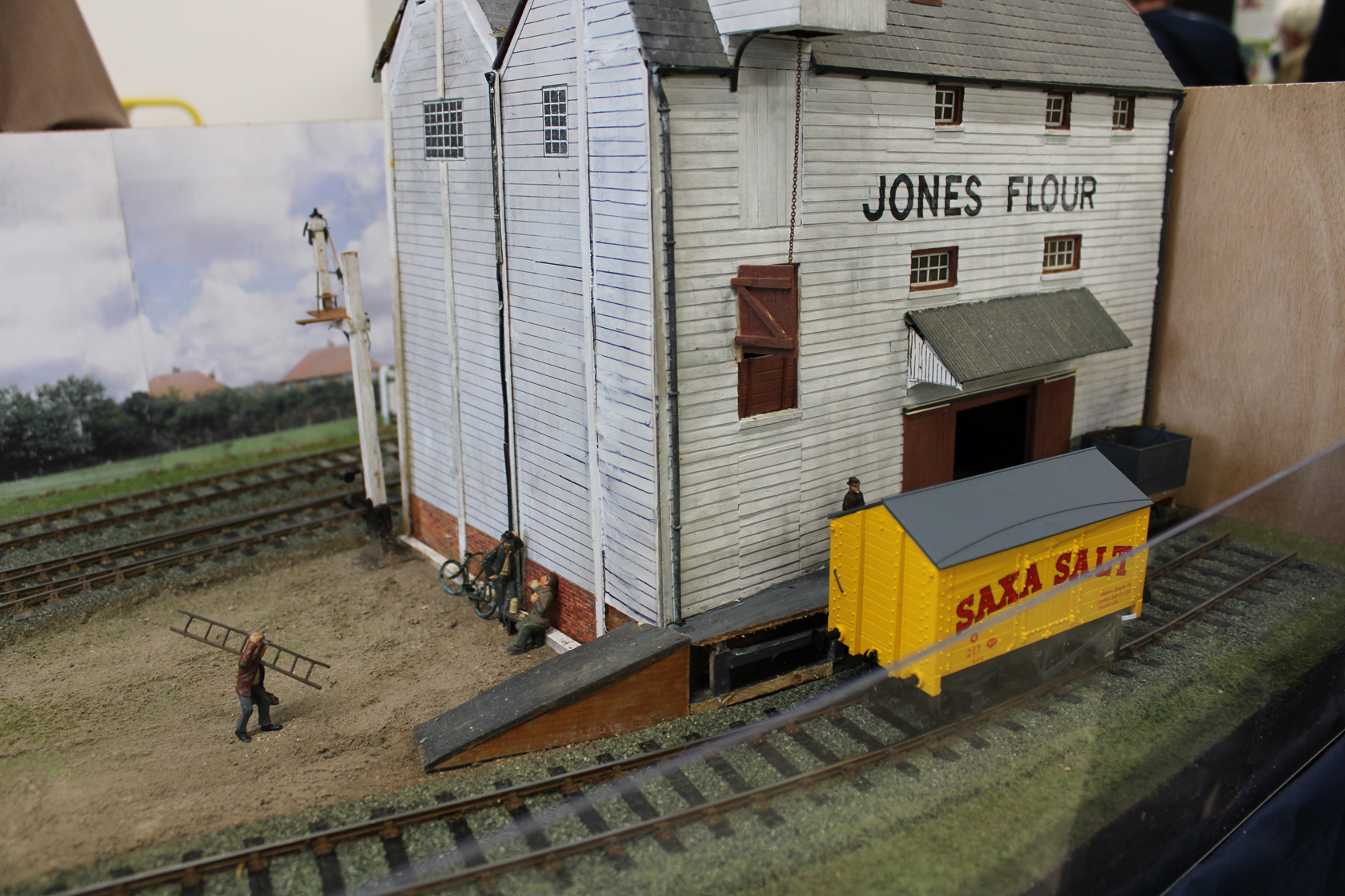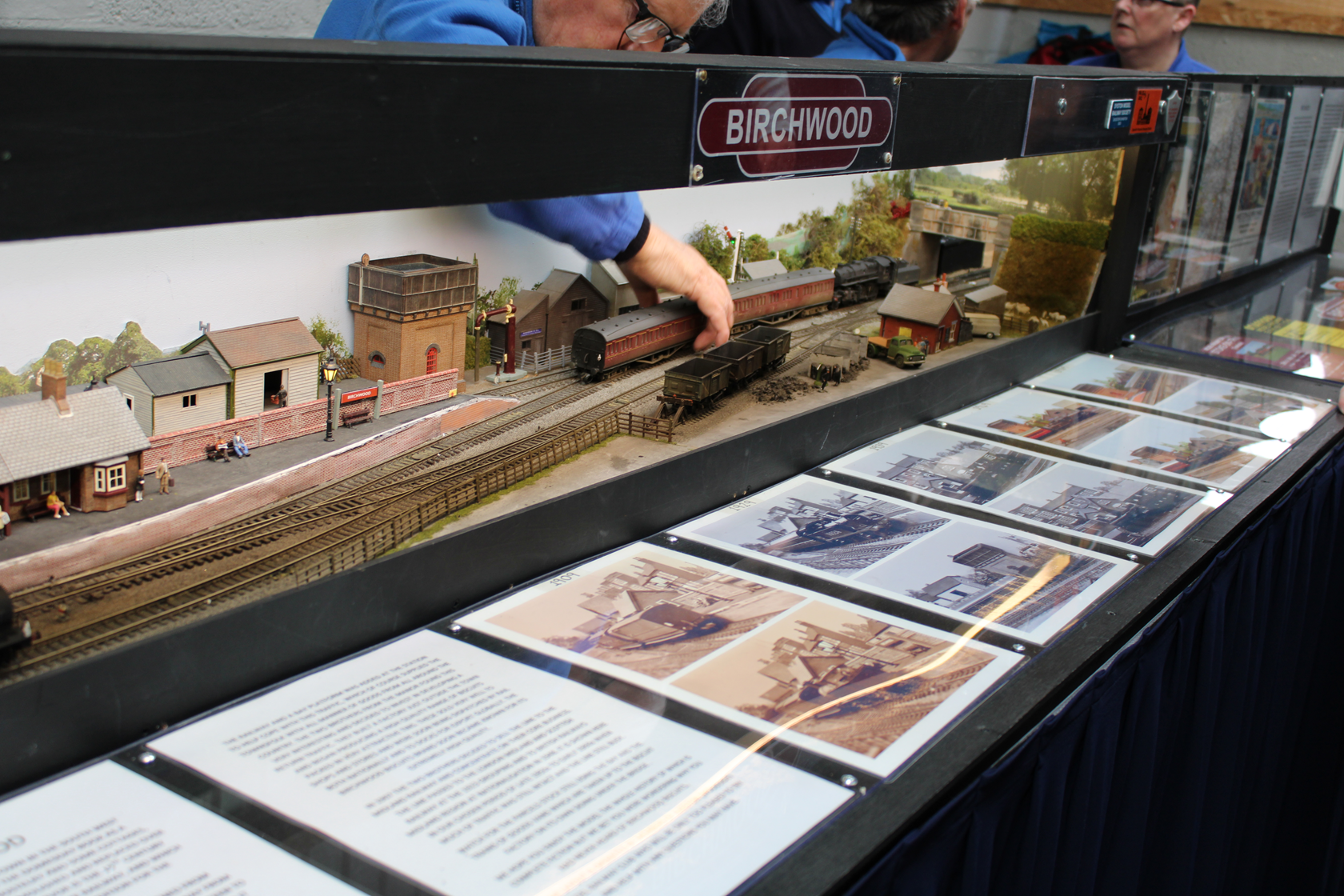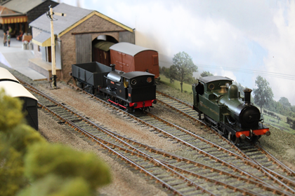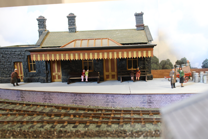 Birchwood is a small market town in the south west midlands, it is mentioned in the doomsday book as a settlement consisting of a hostelry and some cottages all of which have been demolished and replaced over the years some several times, a survivor is the 15th century church which can be seen behind the railway, this has always been kept in good order for the townsfolk. In early Victorian times a railway was opened from Birmingham to Bristol passing twelve miles away from Birchwood, the good people of Birchwood were keen to link up with this line and proposed to build one themselves, this was thwarted by two factors, the local lord of the manor who refused to allow the line to cross his land and lack of finance, the scheme was shelved and birchwood became a bit of a backwater. The line passed to the London Midland and Scottish railway at the 1923 grouping and British railways in 1948, it is shown here in our chosen period of late 1950s early 1960s when much of traffic was still intact and the line busy. Watch for the parcels stock still using the bay and the trains of goods vans which are taken up to the biscuit factory on its own siding under the bridge. We hope you enjoy the model the whole history of which is complete fiction but we bet you were wondering why you had never heard of birchwood biscuits. The layout is operated by members of Ilkeston (woodside) model railway club who will only be to pleased to try and help with any questions you may have.