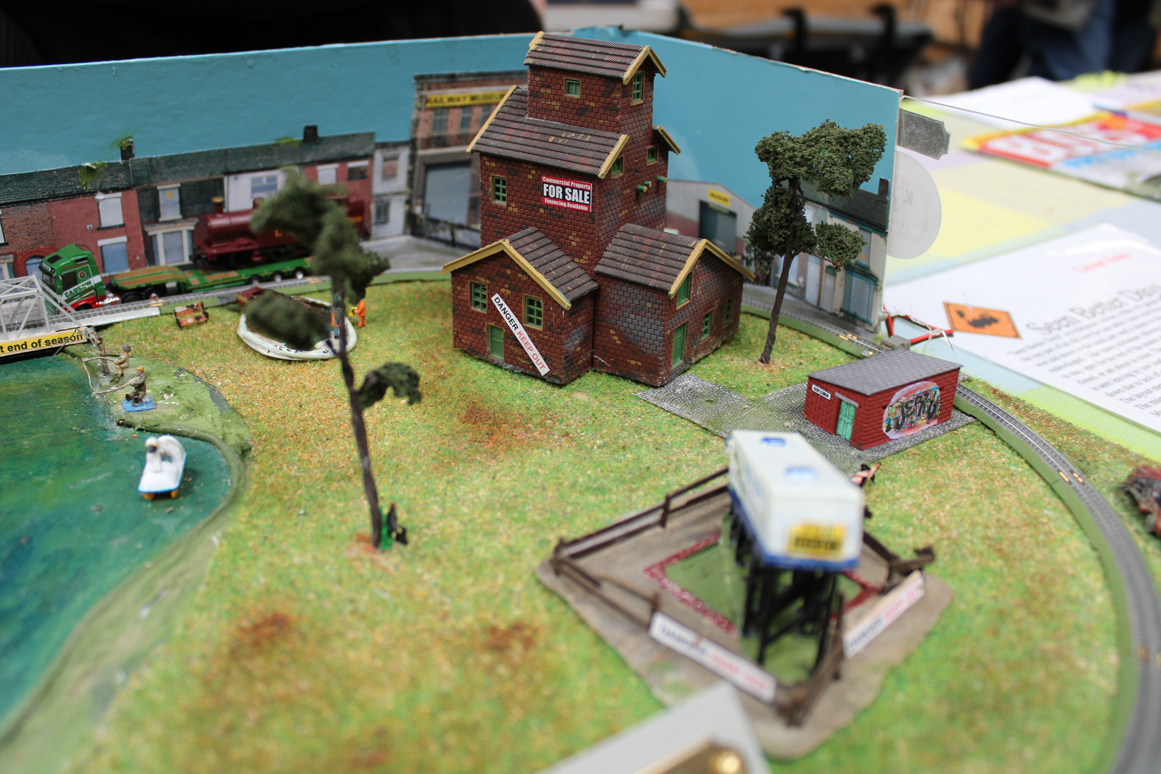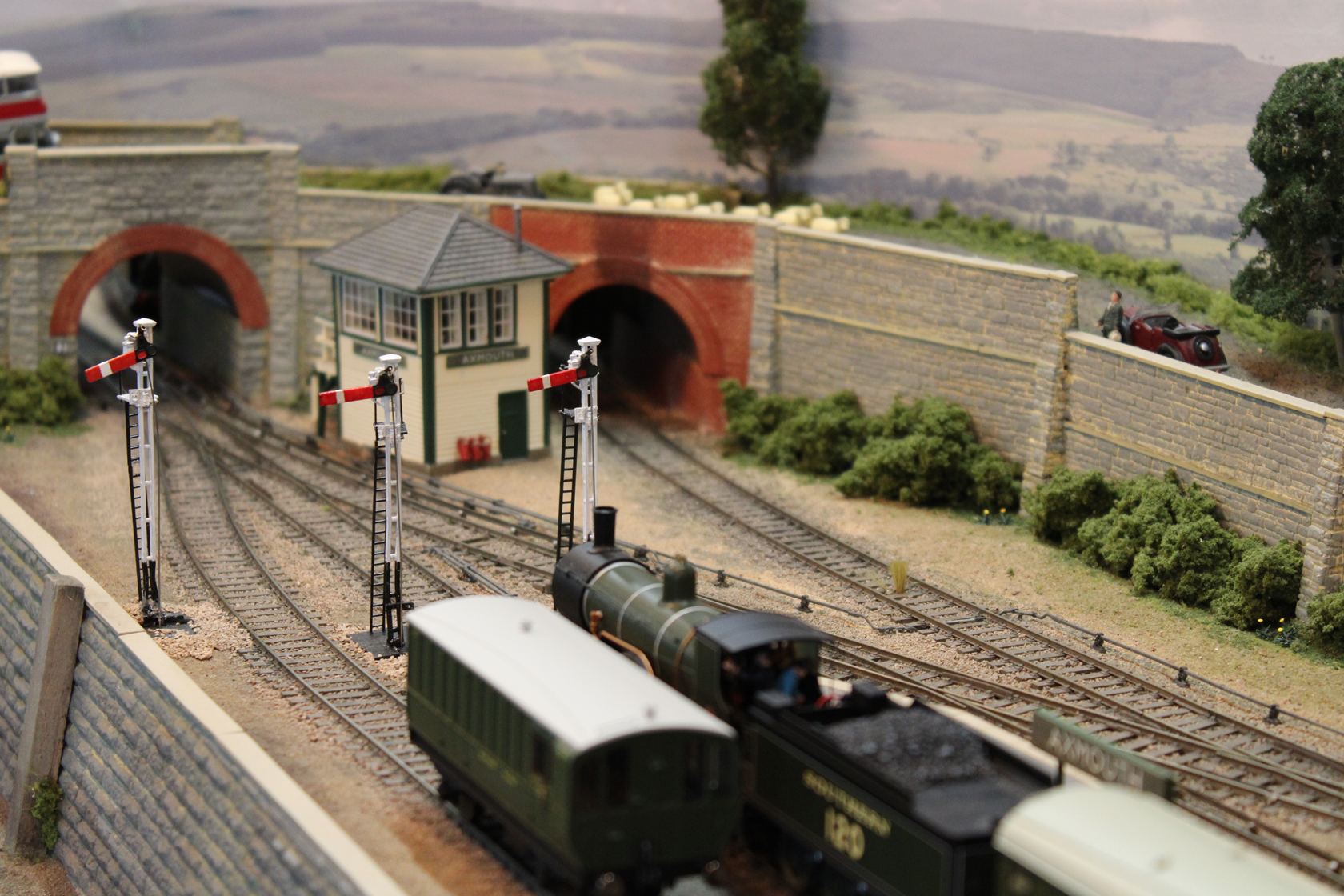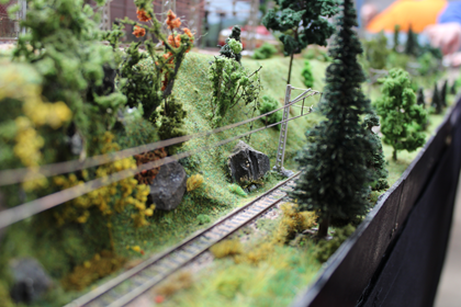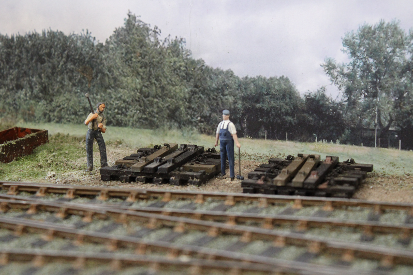 Birchwood is a small market town in the south west midlands, it is mentioned in the doomsday book as a settlement consisting of a hostelry and some cottages all of which have been demolished and replaced over the years some several times, a survivor is the 15th century church which can be seen behind the railway, this has always been kept in good order for the townsfolk. In early Victorian times a railway was opened from Birmingham to Bristol passing twelve miles away from Birchwood, the good people of Birchwood were keen to link up with this line and proposed to build one themselves, this was thwarted by two factors, the local lord of the manor who refused to allow the line to cross his land and lack of finance, the scheme was shelved and birchwood became a bit of a backwater. The line passed to the London Midland and Scottish railway at the 1923 grouping and British railways in 1948, it is shown here in our chosen period of late 1950s early 1960s when much of traffic was still intact and the line busy. Watch for the parcels stock still using the bay and the trains of goods vans which are taken up to the biscuit factory on its own siding under the bridge. We hope you enjoy the model the whole history of which is complete fiction but we bet you were wondering why you had never heard of birchwood biscuits. The layout is operated by members of Ilkeston (woodside) model railway club who will only be to pleased to try and help with any questions you may have.